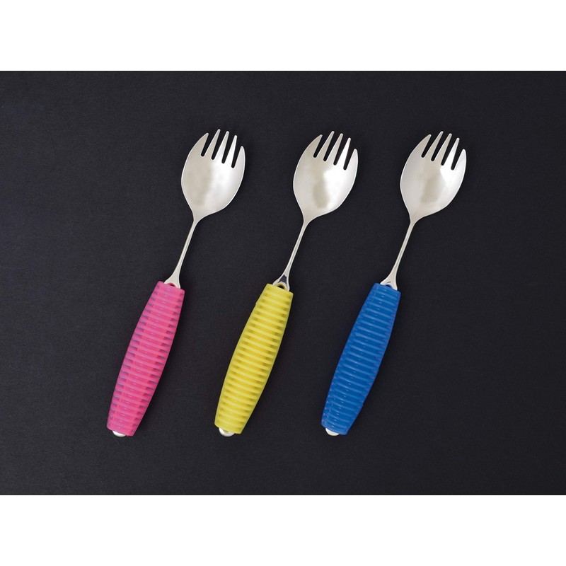 - This is a product that can be used in both parts and spoons. This stainless steel spoon features a scoop that can be bent up and down to side for a comfortable meal experience. Handle can be bent up and down. When bending, please put the thumb of both hands on the neck of the spoon and bend slowly The spoon depth is a shallow shape that is easy to retrieve. Boiled disinfection is OK (but not for microwave use) *This is a set of spoon and silicone grip
