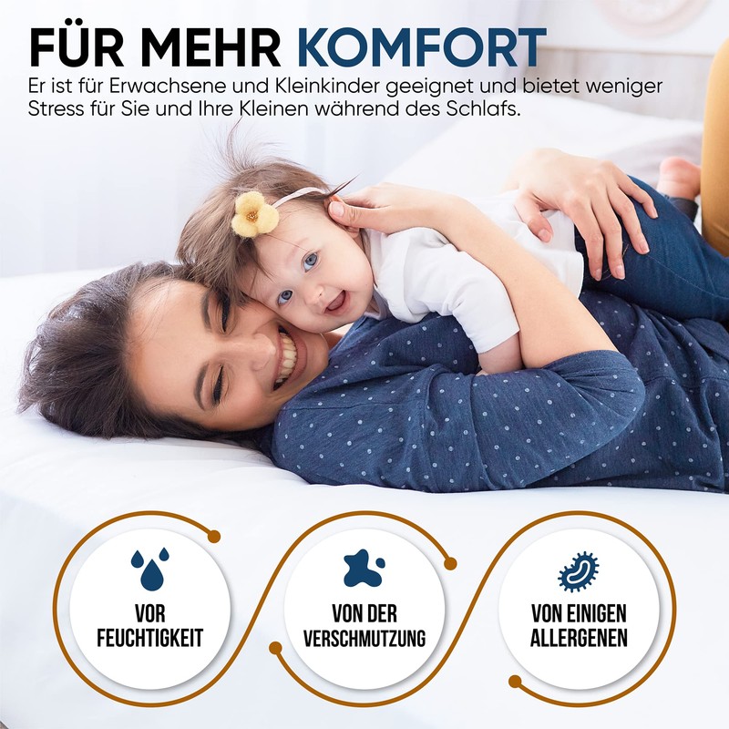 - Guaranteed protection and savings: Thanks to your mattress protector, the life of your mattress is extended and you can save money. You no longer have to change your mattress every few years, whether for age reasons or because it is worn or stained. Protects your mattress from sweat, liquids, incontinence, dust and stains, etc.