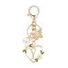 - Size & Material: Length of the keychain:4.33"(11CM),Size of heart:1.49"*1.53"(3.8CM*3.9CM). Our gold letter keyring is made of alloy, Cubic Zirconia crystals and simulated pearl. It's durable and not easy to fade. Comfortable for touch
