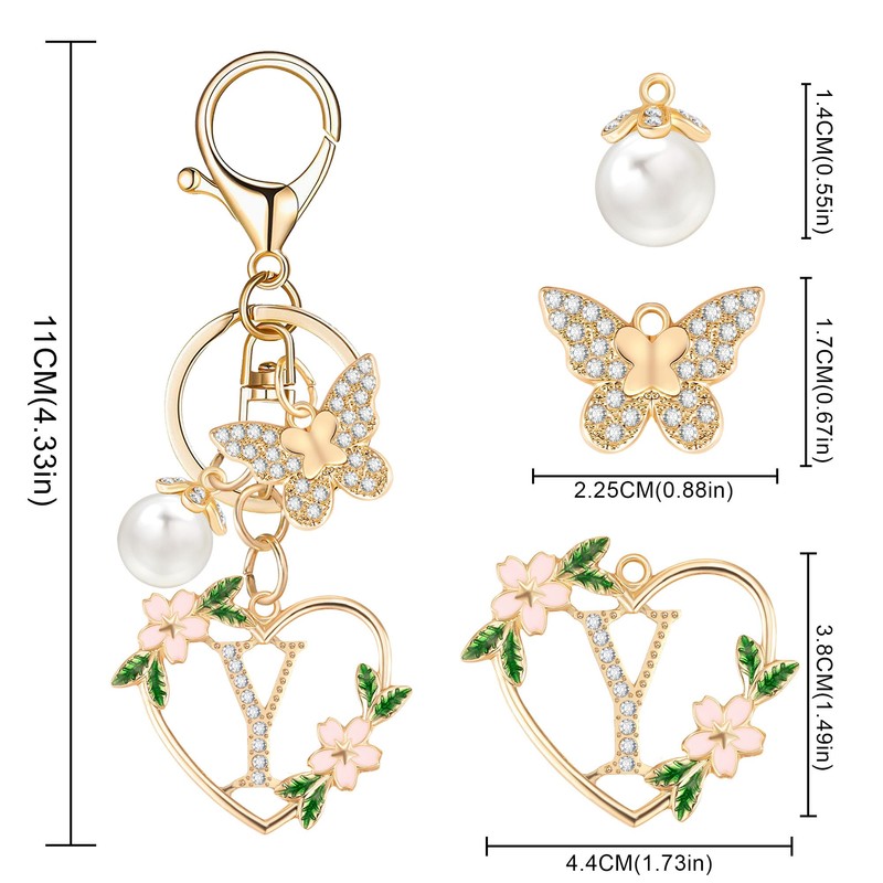 - Unique Design: Our keychain incorporates letters into the heart design and features a butterfly and pearl charm that is cute, sparkly and stylish! It can meet your diverse decorative needs, great for your bag