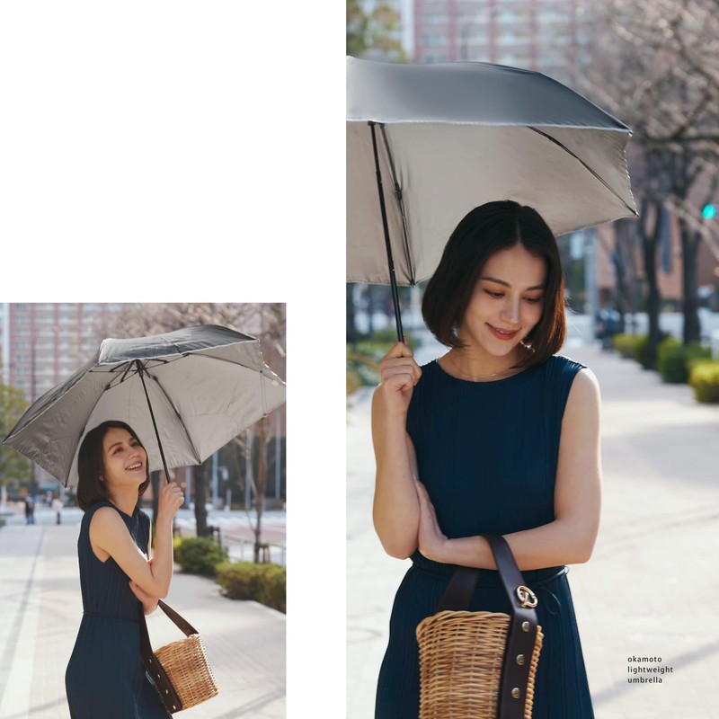 Okamoto Harajuku Store Unisex Parasol, Folding Umbrella, Inconspicuous Silver Back, 99% UV Protection, Comfortable Commuting, Ultra Lightweight, 5.3 oz (150 g) Carbon Ribs, Regular Size (Front