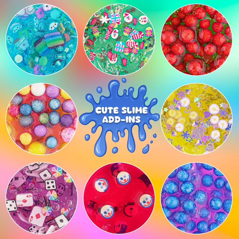 - Big Slime Kit for Kids149 Pcs DIY slime making kit contains: 12 crystal slime, 13 slime clay, 12 modeing foam, 6 slime charm, 6 slime slices, 3 foam balls, 24 glitter powder, 12 containers37 decorative accessories, 8 animal models, 3 clay tool, 1 clown silicene mold & 12 sticker. This slime kit has everything you need to unleash your creativity.