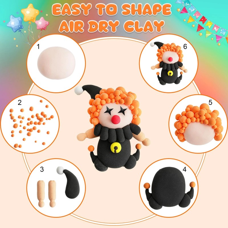 - Super Soft Air Dry ClayThis Magic Clay is easy to use, not stick hands, dries naturally within 24-48 hours. 13 different basic colors can meet children's creative needs, of course children can combine them in the way they like to get the color they want.