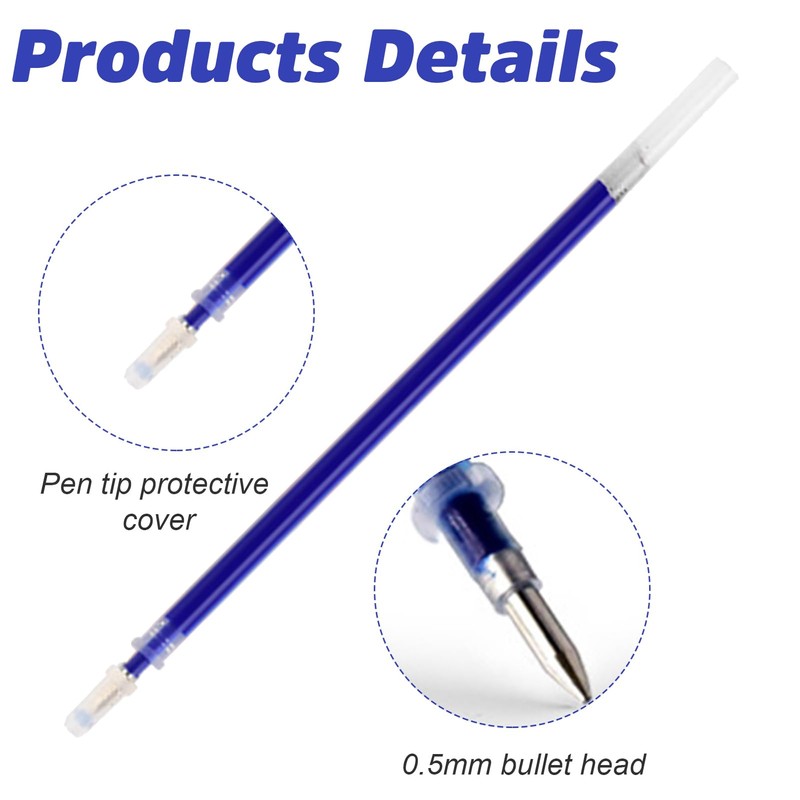 - Classic ball tip: metal pen tip, more wear-resistant and drop-resistant. With a 0.5mm pen tip, the pen can write fluently and continuously. The gel pen refill ink capacity is large, and it can write stably for a long time. It comes with a plastic cap to protect the feather from loss of tint and drying out. It can be used on any type of paper to ensure strong, even and uninterrupted lines.