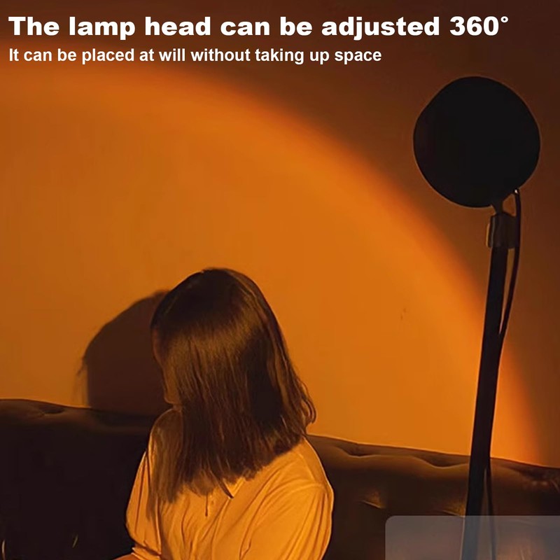 - 180 degree rotation: the lamp head of the sunset lamp can be rotated 180 degrees. By turning the lamp head, you can adjust the size and shape of the aperture. The greater the distance, the greater the light projection on the wall or ceiling. The light creates stunning colourful circular patterns on walls, ceilings and floors.