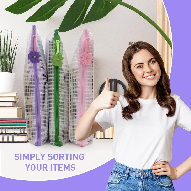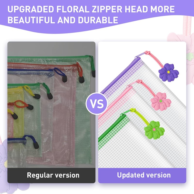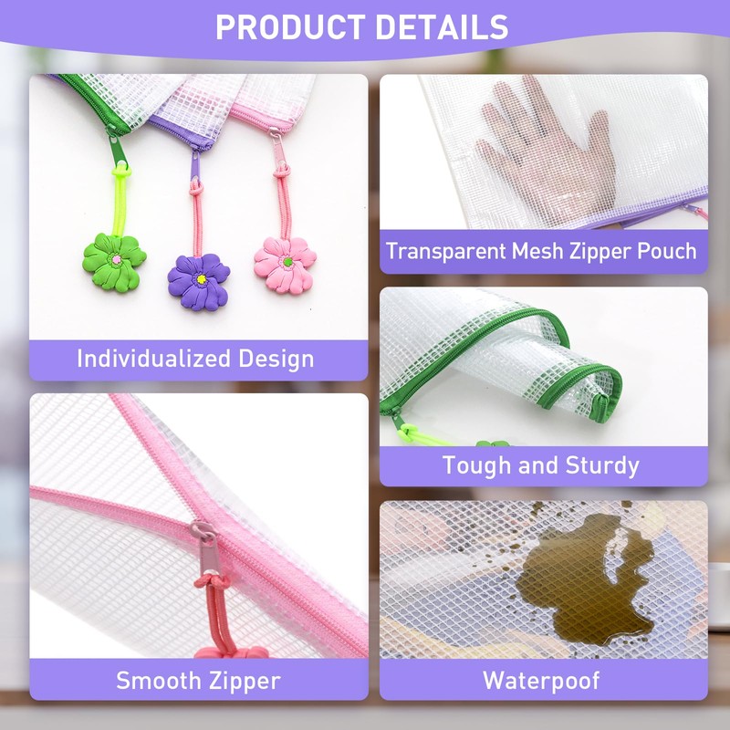 - Latest Designs: Floral drawstring design makes the mesh zipper pouch more fashionable and beautiful, unique design makes your storage more distinctive and easy to recognize. Our plastic zipper pouches come with a floral drawstring for a more stylish and beautiful look, making your organization bags more upscale and distinctive, great for puzzle bags, organizing bags and classroom zipper bags. These mesh zipper bags are clear and durable and will keep your items neatly organized and easily accessible.