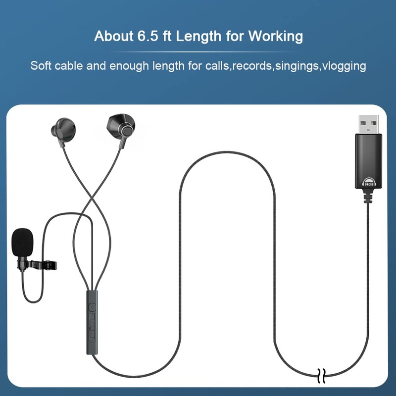okcsc AC300 USB Headphones for Laptop with Omnidirectional Lavalier Lapel Microphone Lightweight USB Headset 6.5 FT Length Wired Earbuds with Volume Control for Video Music Recording Live Room Silver