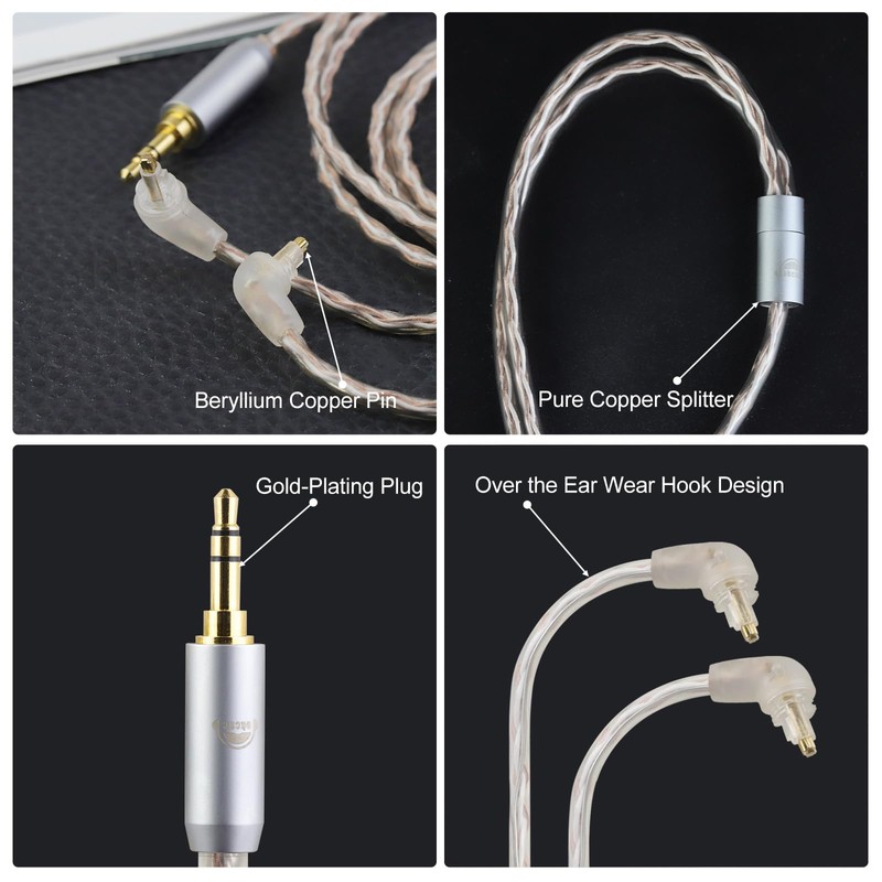- Raw Material & Design Concept: This cable is a 4-core upgraded cable for SONY to 2.5MM/3.5MM/4.4MM plug models. Gold-plated plug design, pure copper separator, plus ear-mounted hook design. The cable is made of high-purity oxygen-free copper, providing a sharper bass response through higher linearity and resolution.
