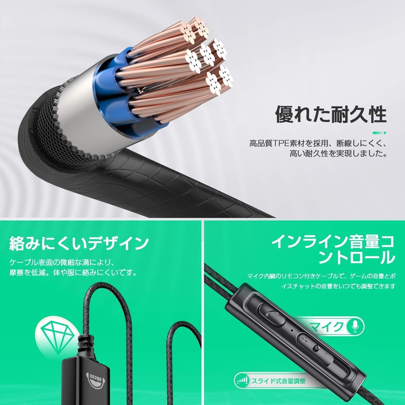 - (High comfort and durability) This is an in-ear type that can be worn on both ears. It is comfortable to wear with less pressure on the ears. It is recommended that you use it comfortably for long hours of work or gaming. In addition, it is made of high quality TPE material that is durable and does not disconnect. Micro grooves on the cable surface reduce friction