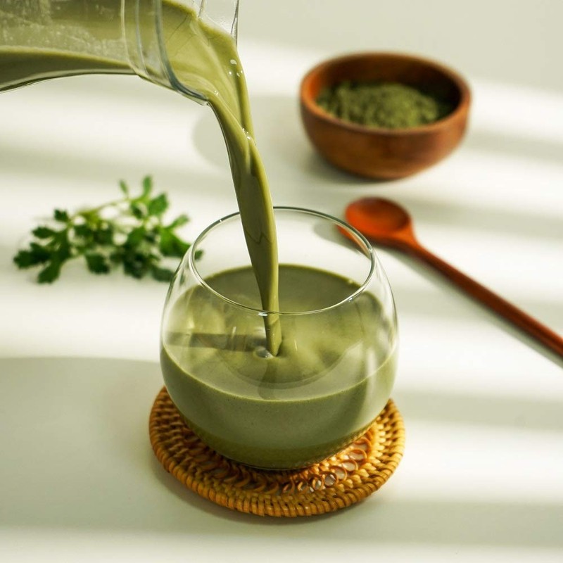 - ふんわりとしたよもぎの香りで心を落ち着かせてくれる「よもぎソイラテ」がわずか30秒で出来上がり。 動物性の原材料が一切入っていない植物性100%のヴィーガンラテです。