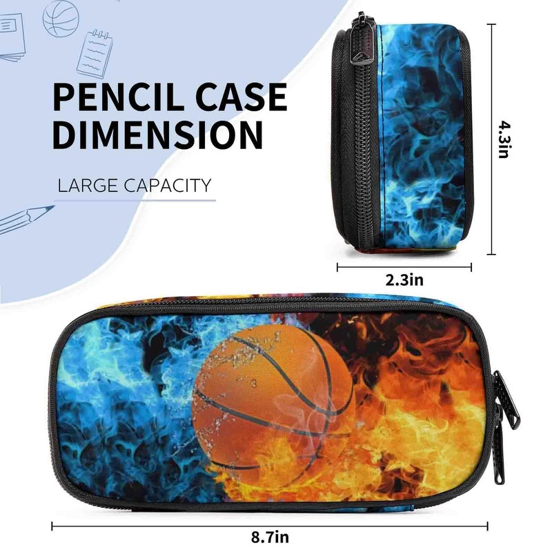 Okentiso Basketball Printed Pencil Case, Large Capacity Pencil Pouch, Pencil Bag with Zipper Compartment, Boy's Multifunction Stationery Bag for Back to School Students