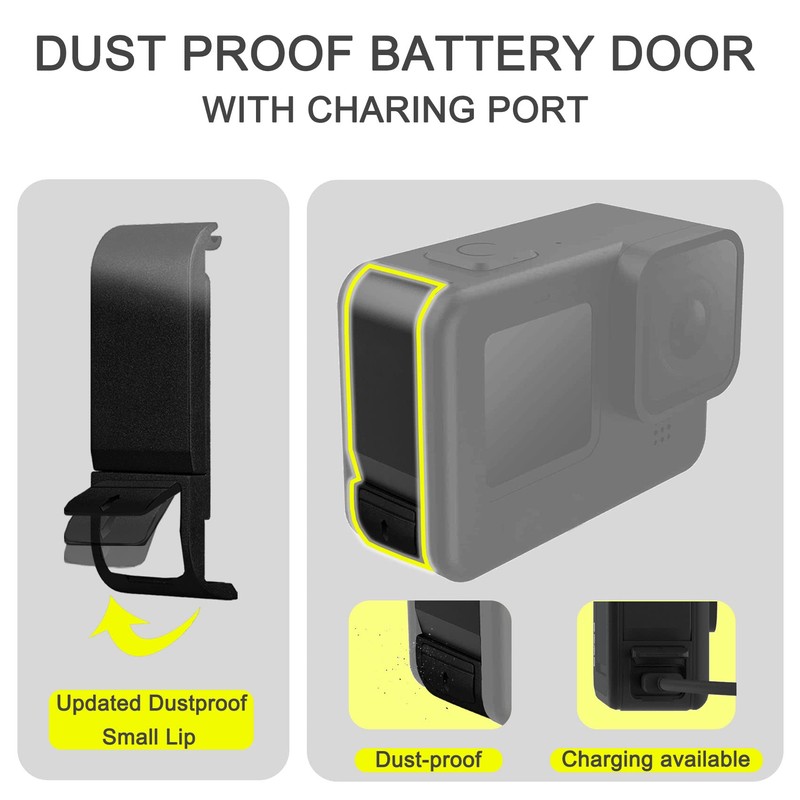 - 【Battery side cover with side door】OKFUN's new side cover provides USB port access, after installation you just need to open the side door on the side cover to charge, while the battery and SD card are safely covered by the side door, you don't need to worry about the battery falling out . The side door on the battery side cover can effectively prevent dust and water droplets from entering the charging port, and protect your Go pro camera in all directions.