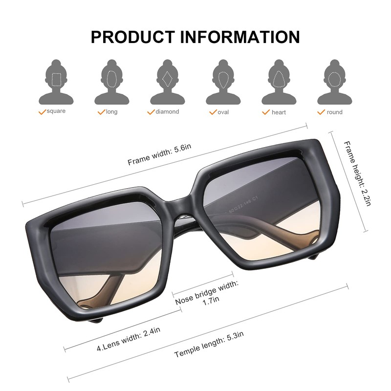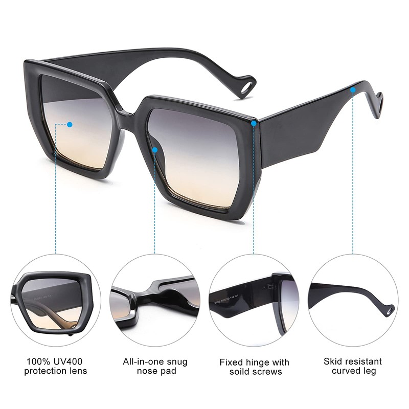 OKH Oversized Sunglasses for Women, Trendy Square Sun Glasses Women UV Blocking Shades (Black Frame)