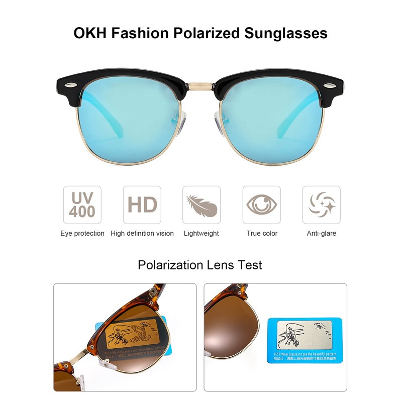 - 【 GIFT IDEAS PACKAGE 】Vintage polarized sunglasses*1, portable glasses pouch*1, microfiber cleaning cloth*1, OKH glasses box*1. It is also a gift packaged ready, making it a wonderful gift idea for friends and family!