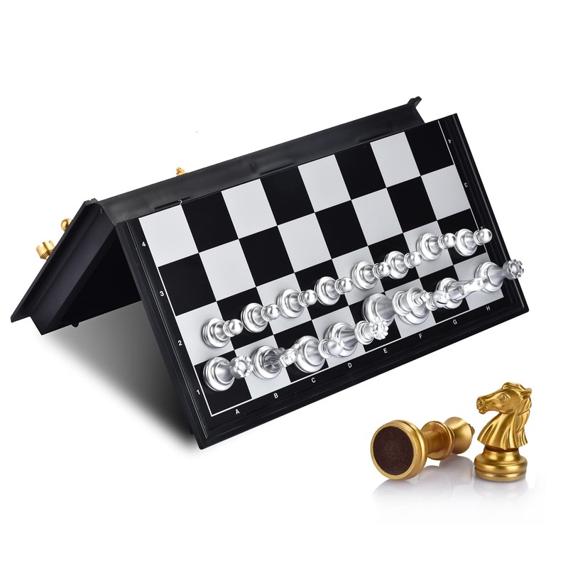 - 【PORTABLE SIZE】Chess board is foldable. Open size of chessboard is 9.85" x 9.85" x 0.70" inches, while folded package size is 9.85" x 4.92" x 1.40". This perfect size of Chess board is small enough to travel with, but also large enough for easy game play. Suitable for home, company, school, journey, travel, bus or picnic.