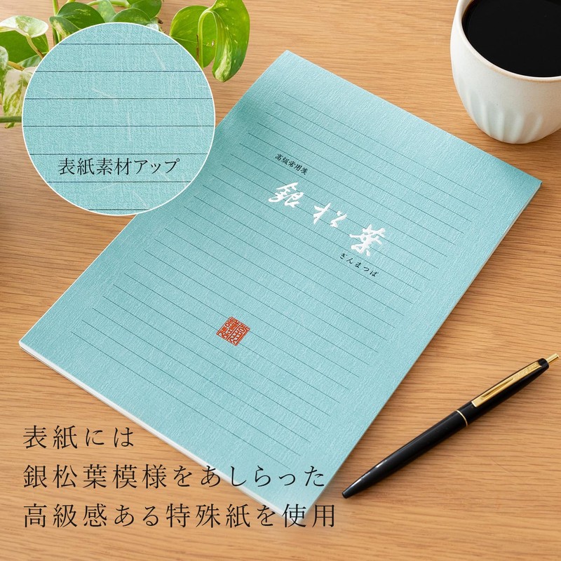 - Okina "Ginatsu Leaves" Stationery Notebook, Horizontal Print, Semi-B5, 22 Lines