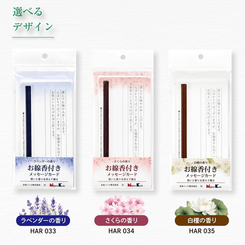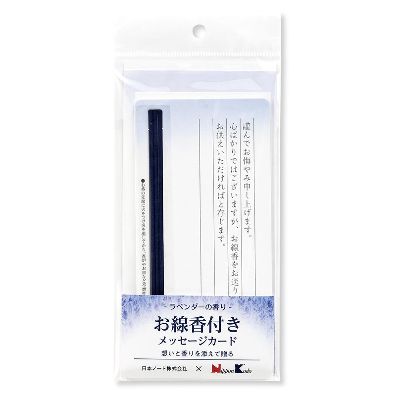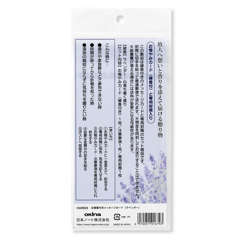 Okina HAR033 Message Card Set with Incense, Lavender, Sympathy Card, 3 Incense Sticks, Caution, Dedicated Envelope