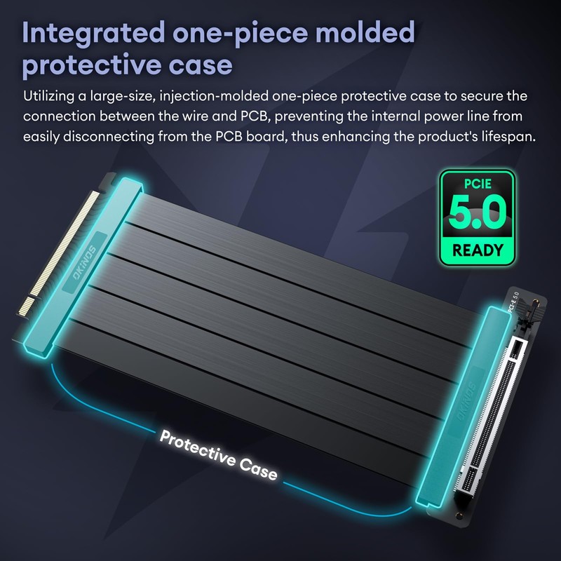 Okinos, PCIE 5.0 Riser Cables, Future Proof for Gen 5 GPU, Compatible RTX4090, RX7900XTX, Transfer Rate 32.0 GT/s, 90 Degree Adapter, PCIE 4.0 Riser Cable, 200mm Black