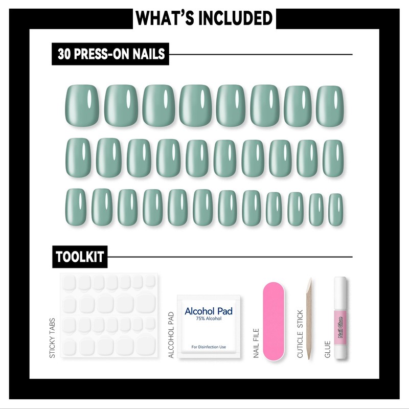 - REAL GEL POLISH, REAL SHINE: Our press on nails are painted with high-quality gel nail polish through a meticulous multi-step process for a durable, long-lasting shimmering shine.
