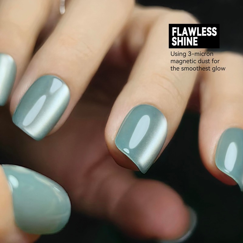 - STUNNING CAT EYE DESIGN: Our cat eye designs are crafted using a specially developed micro magnetic powder that creates a smooth, luminous shimmer with exceptional depth and clarity. The turquoise blue-green gleam shifts and sparkles with every gesture, perfectly paired with an elegant short ballerina squoval shape for a sophisticated yet versatile look suitable for any occasion.