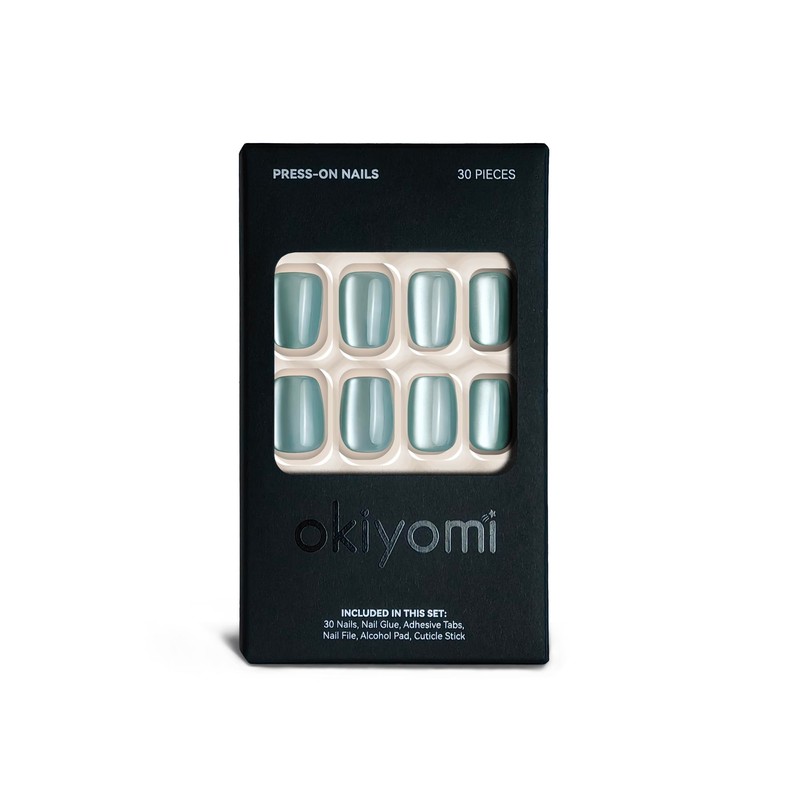 Okiyomi Blue Press on Nails - Sea Foam Blue Cat Eye Press on Nails | Magnetic Turquoise Blue Shimmer | Short Ballerina Squoval Shape | 15 Sizes - 30 Soft Gel Fake Nails with Glue and Stick On Tabs