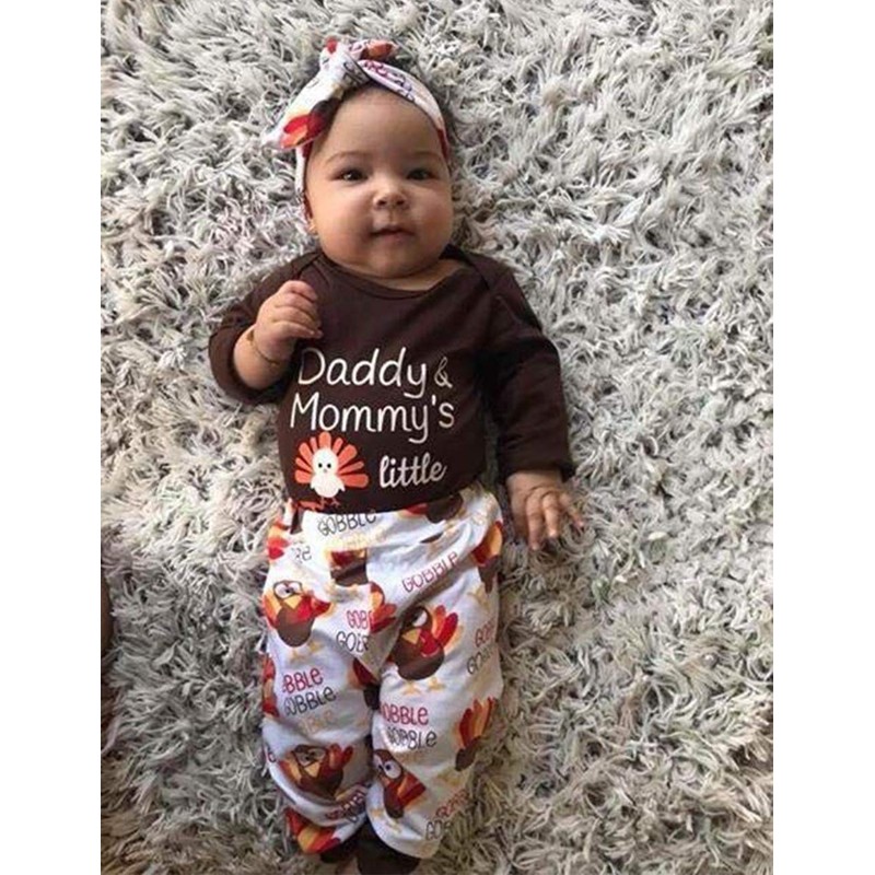 oklady Baby Thanksgiving Outfit Newborn Boy Girl Letter Print Romper Turkey Print Pant With Hat Clothes set(12-18 Months)
