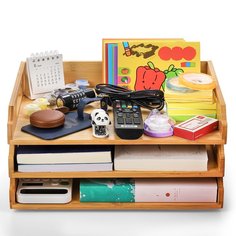 - These desk paper organizers with bamboo material adds a touch of natural elegance, complement kinds of decor, ideal for use on desktop, personal work spaces in offices, classrooms, cubicles, dorm, or home. You can customize the configuration according to your needs.