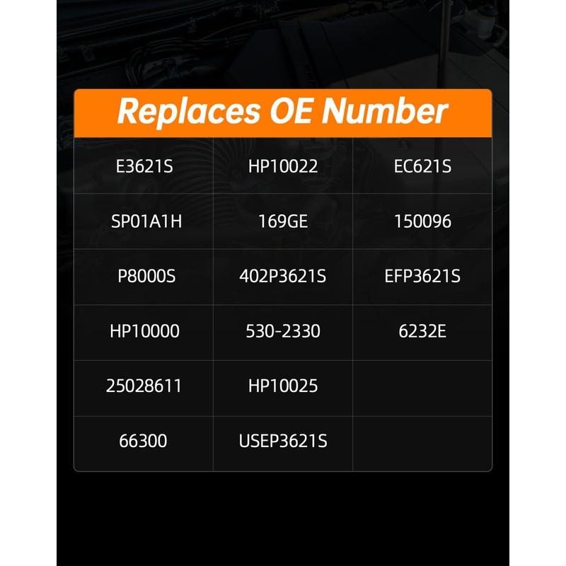 - Replaces OE Number: E3621S, SP01A1H, P8000S, HP10000, 25028611,66300, HP10022, 169GE, 402P3621S, 530-2330, HP10025, USEP3621S, EC621S, 150096, EFP3621S, 6232E