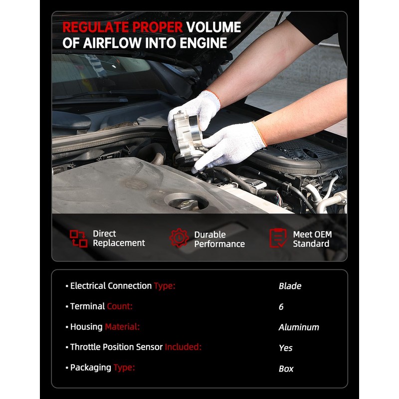 - WHEN TO REPLACE:If the electronic throttle control light in the vehicle lights up, and symptoms such as engine stalling, inability to start, hesitation during acceleration, or power surges occur, it indicates a potential problem with the electronic throttle body. HOW TO WORK: With TPS and IAC, OKLPF electronic throttle body regulates the air into the engine, for optimum efficiency and performance of the engine
