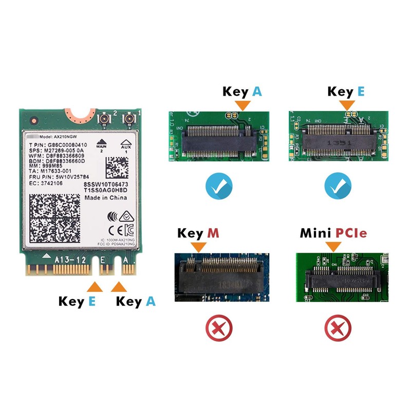 • 【互換性とドライバー】AX210 WiFi 6Eモジュールは最新のWiFiテクノロジーと周波数バンドリソースを備えており、標準の NGFF M.2 Key A または Key E ソケットを備えたデスクトップと互換性があります。ただし、Intel CNViを備えた M.2 ソケット (Key E) は除きます。最新ドライバーはインテルウェブからダウンロードできます 「AX210」を検索してダウンロードできます.