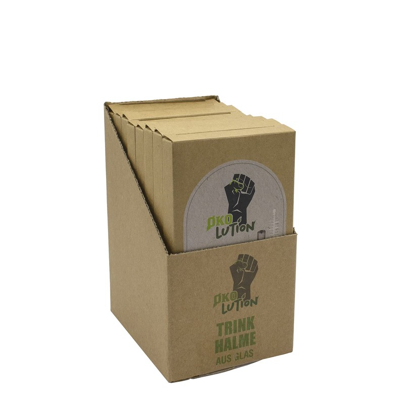 Ökolution Glass Drinking Straws 6 Pieces Length 15 cm Reusable and Environmentally Friendly with Practical Cleaning Brush Diameter Approx. 10 mm Sustainable FSC Cardboard Packaging