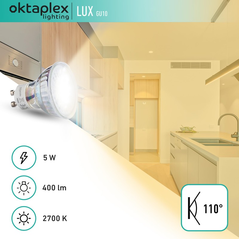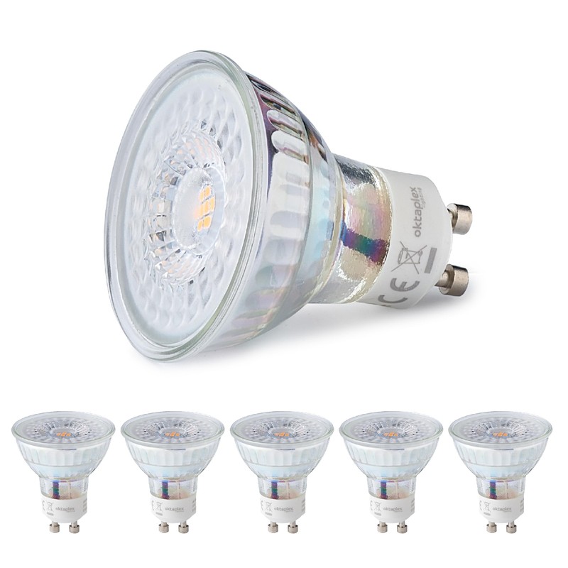 Oktaplex Lux GU10 Dimmable LED Lamp Warm White 2700K 400lm 5W 110° Beam Angle Set of 6