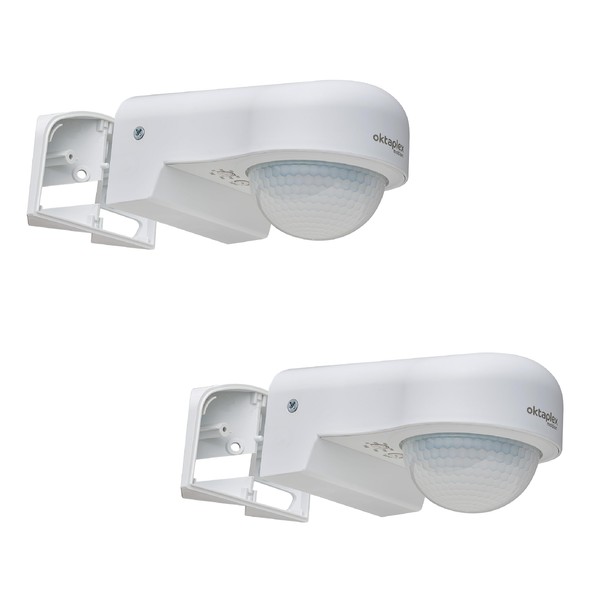 Oktaplex Set of 2 Don Outdoor Motion Sensors 230 V IP65 240° Infrared Sensor Adjustable 10 m Range White with Corner Bracket