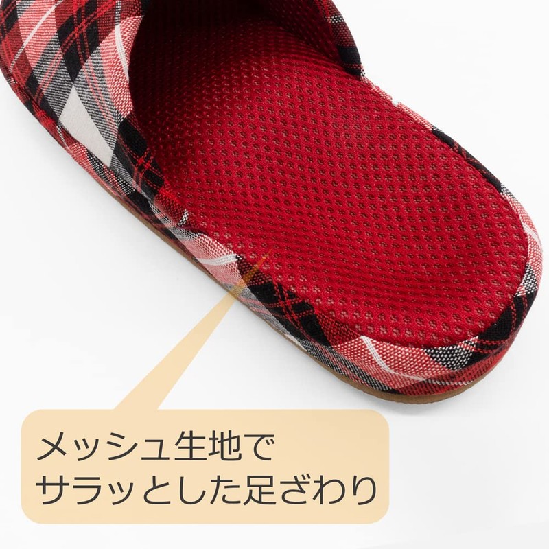 Okumura AAAAAA6910 BL Slippers, Sole, Acupuncture Point, Open Front, Mesh, Comfort, L Size, Blue Tartan Check