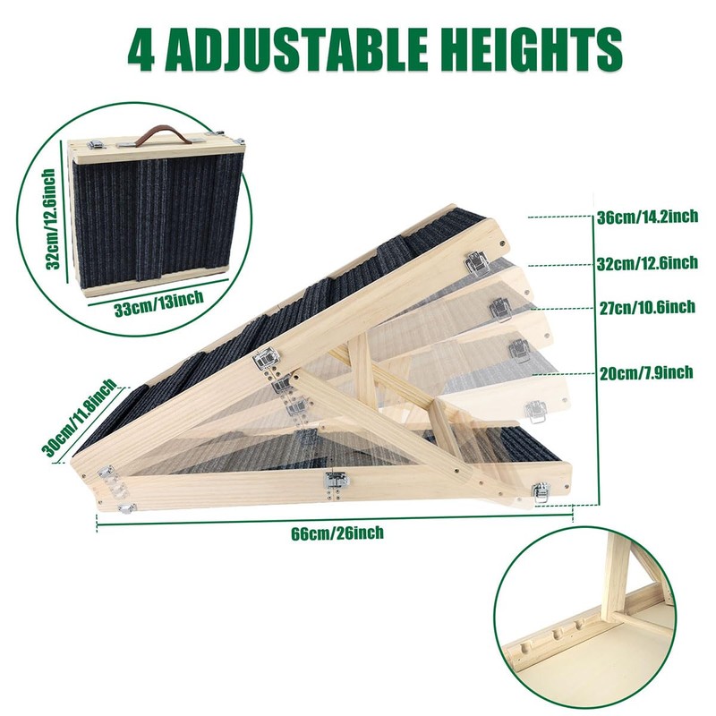 1 .Adjust the ramp height---4 adjustable height to your needs to help your small pet get on and off.