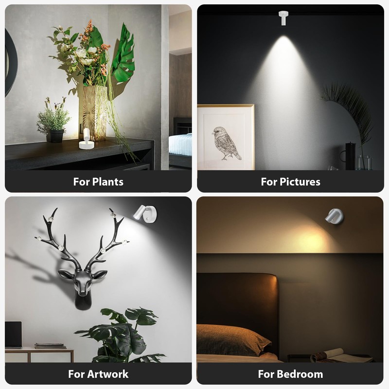 - Magnetic Design & Easy installation: Use a magnet sheet with adhesive attached to mount it in any position, or attach it directly to a magnetic surface. The cordless art uplighting Indoor can be rotated 350 degrees horizontally and adjusted 90 degrees vertically, which is suitable for indoor picture light, indoor plant light, reading light, light for decoration, etc