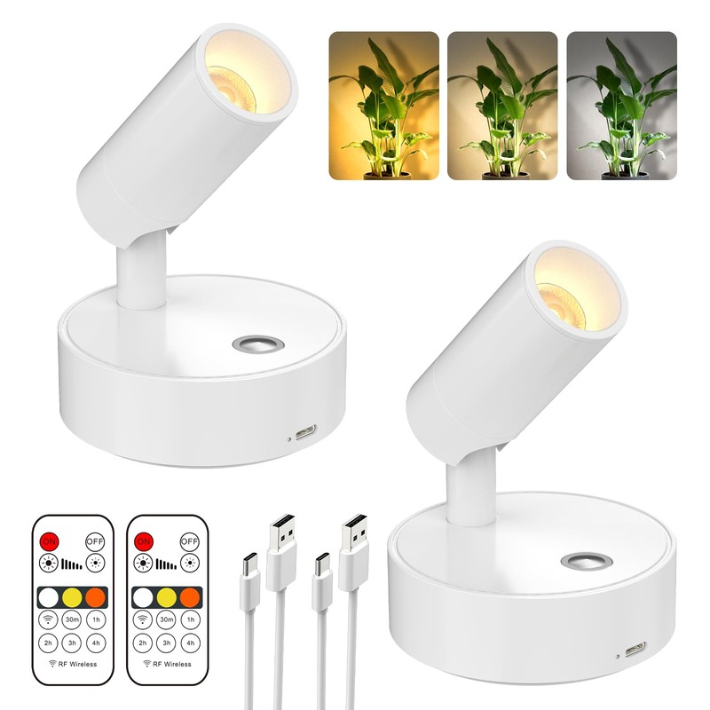 Olafus LED Wireless Spotlight Indoor, Rechargeable Battery Uplighting Indoor with Remote & Timer, 3CCT Picture Lights for Wall, Mini Art Accent Light for Plants Artwork Painting, 2 Pack White