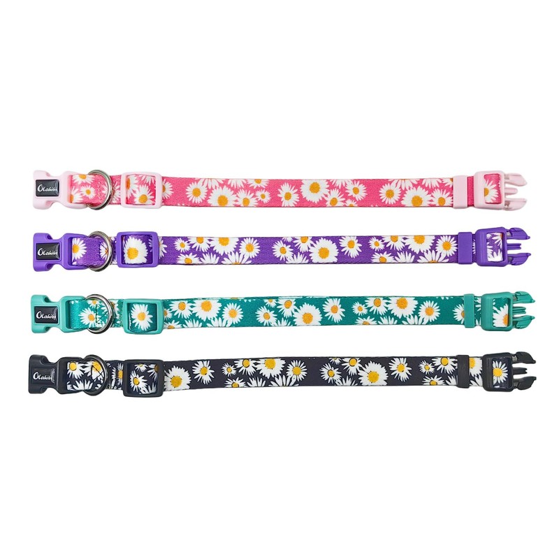 Olahibi Dog Collar and Leash Set, Cute Pink Daisy Pattern, Polyester Material, 5ft Leash, for Small Dogs.(Small, Pink Daisy)