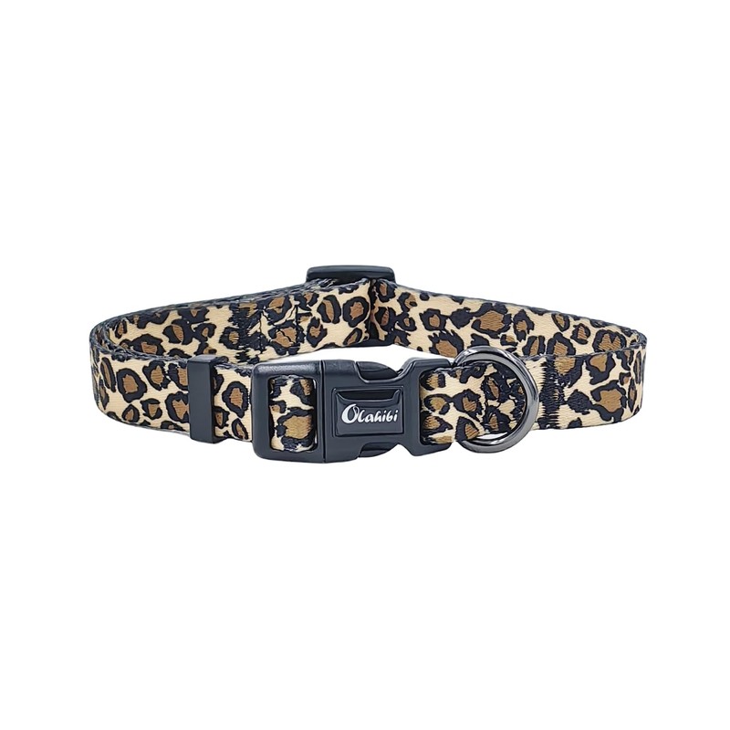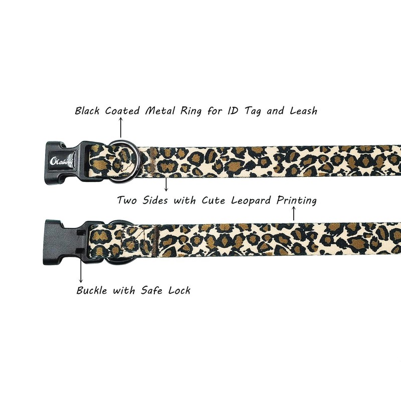 Olahibi Dog Collar and Leash Set, Leopard Pattern, Polyester Material, 5ft Matching Leash, for Medium Dogs.(M, Leopard Set)