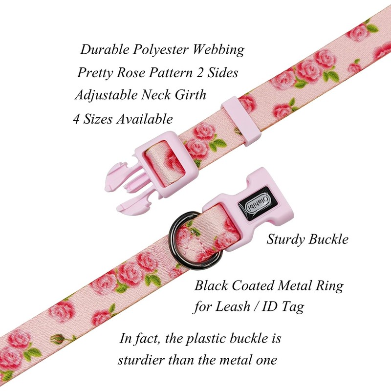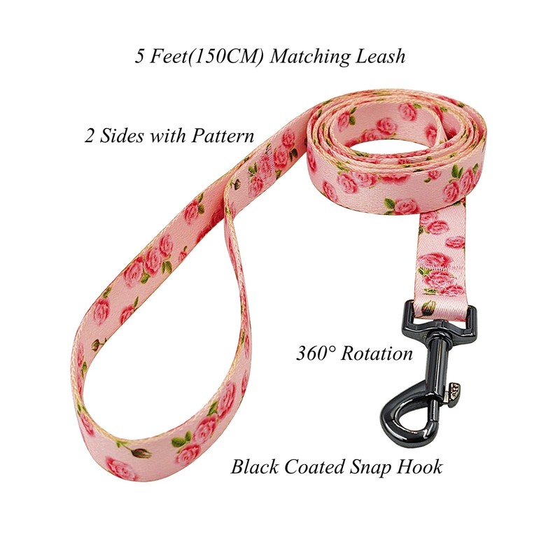 • 🐕2.【Pretty Pattern Design】Very Cute Rose Pattern printing on double sides, with black coated metal D rings and hook,looks high-grade.
