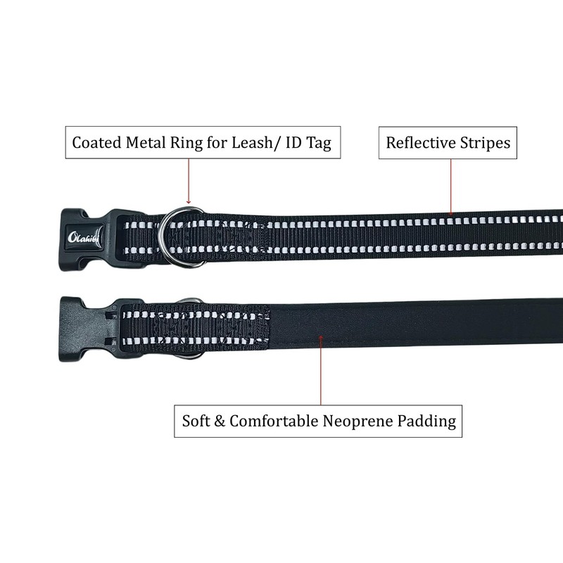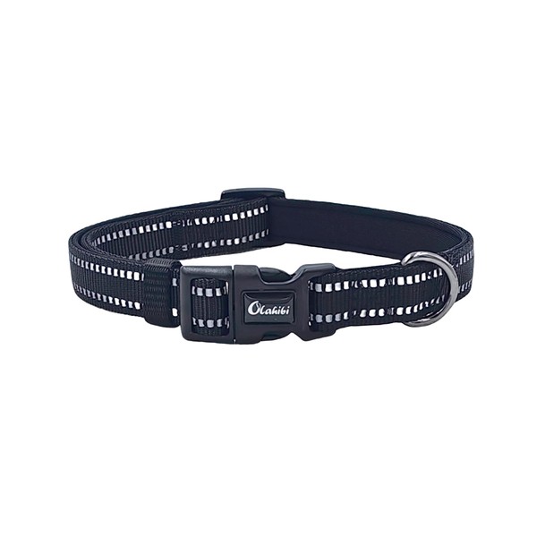 Olahibi Neoprene Padded Dog Collar, Durable Nylon Material, Reflective Stripes,Soft and Comfortable for Medium Dogs(M, Black Collar)