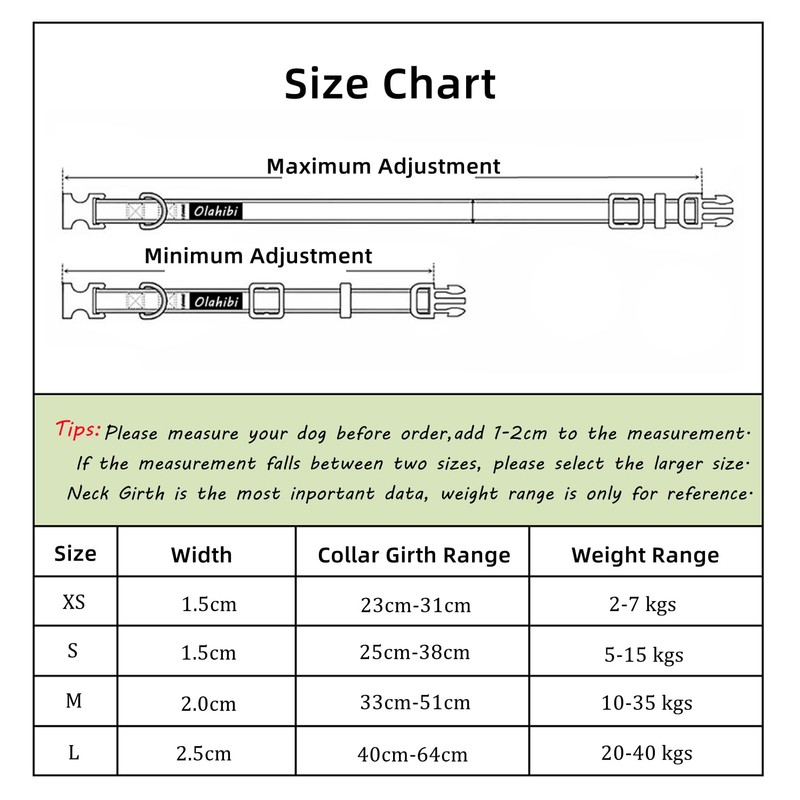 - 2.Medium Size: Width 2.0CM* adjustment Girth 31CM-46CM,please measure your dog's circumference and add 1-2CM before selecting the suitable collar.