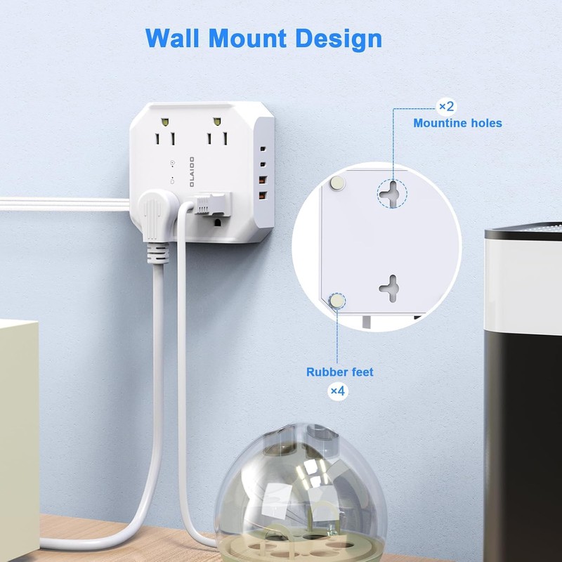 - [Múltiples protecciones de seguridad y excelente servicio postventa] La regleta protectora de sobretensiones OLAIOO cuenta con múltiples protecciones de seguridad, protección contra sobrecargas incorporada, protección contra cortocircuitos y materiales resistentes al fuego, lo que garantiza la tranquilidad al suministrar energía al dispositivo.