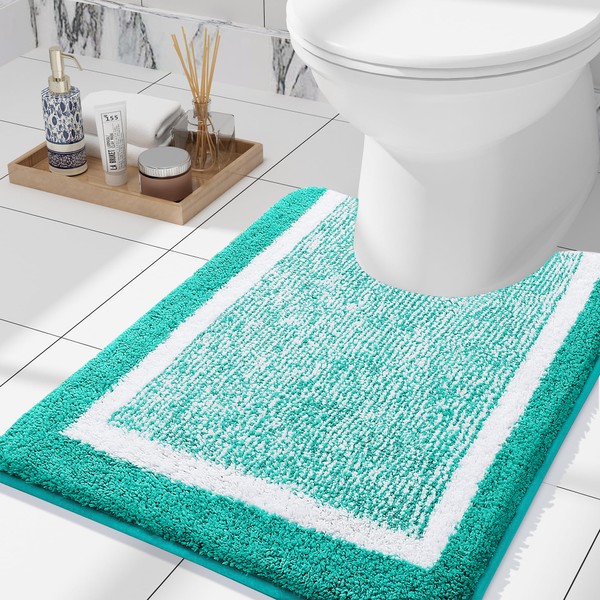 OLANLY Luxury Toilet Rugs U-Shaped 24x20, Extra Soft and Absorbent Microfiber Bathroom Rugs, Non-Slip Plush Toilet Bath Mat, Machine Wash Dry, Contour Bath Rugs for Toilet Base (Green and White)