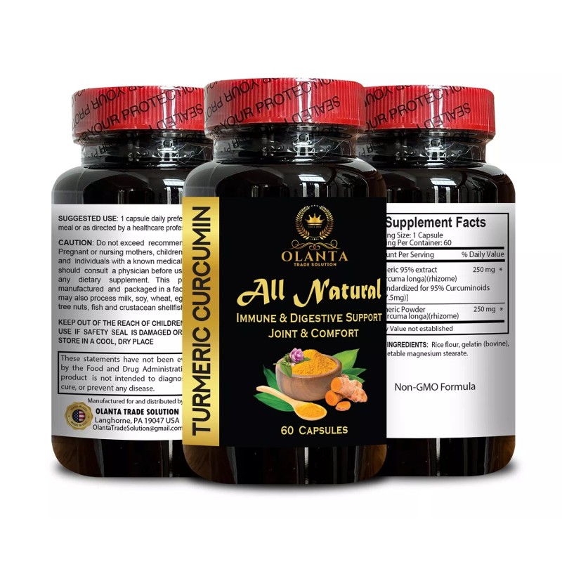 Olanta Trade Solution Turmeric Curcumin, vegan turmeric capsules, Provides Powerful Antioxidant Proper