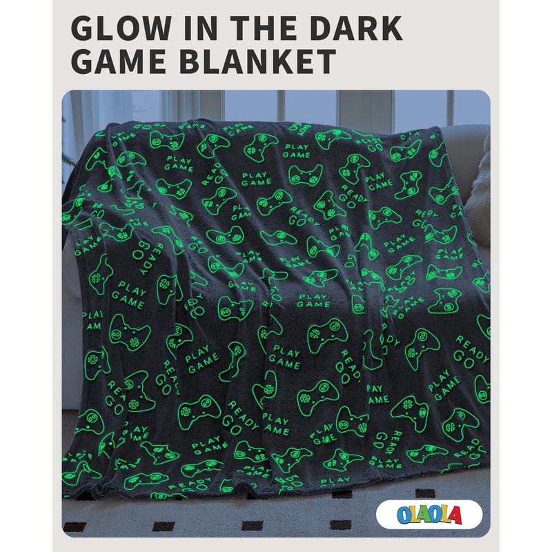 OLAOLA Game Controller Glow in The Dark Blanket for Kids Soft Flannel Throw Blankets Games Gifts for Boys Girls Warm Cosy Sofa Bed Throws (150 x 200cm, Game)