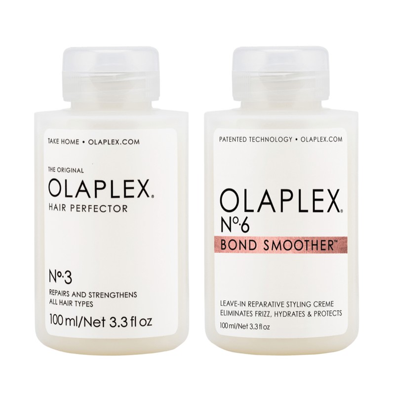 The Olaplex No.3 Hair Perfector and No.6 Bond Smoother Bundle is a hair care set that includes the Olaplex Hair Perfector No.3 100ml and the Olaplex No.6 Bond Smoother 100ml.