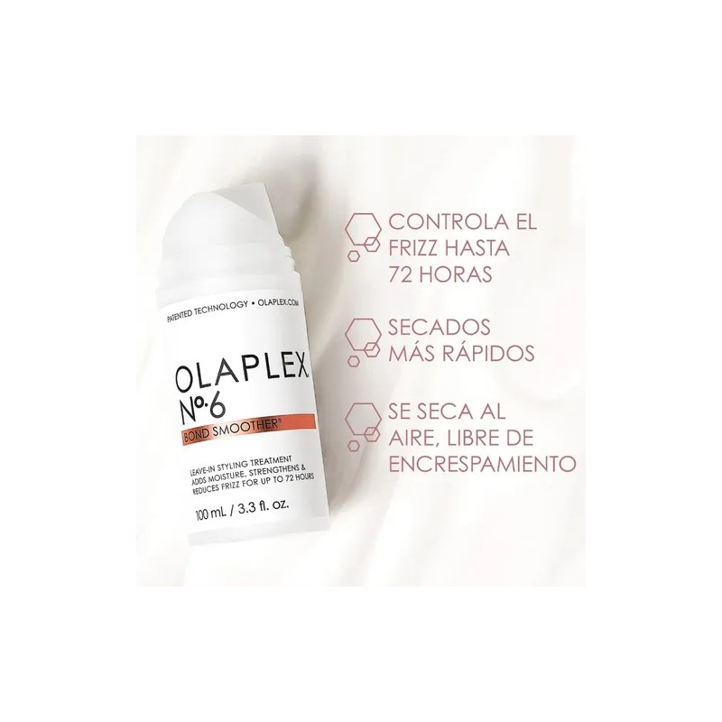 Olaplexx Nº6 es una crema para peinar de estilo reparador que elimina el frizz hasta por 72 horas, hidrata y protege todo tipo de cabello. Deja el cabello liso y elegante sin la necesidad de plancharlo y define/suaviza los rizos naturales.