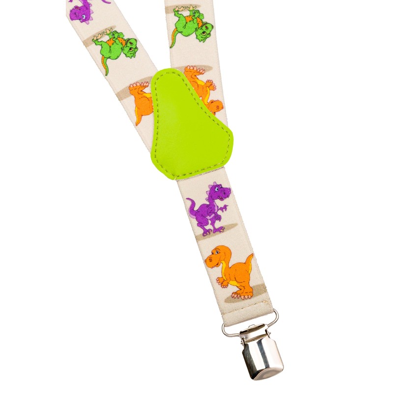 Olata Children’s Elasticated Dinosaur Design Y-Shape Braces/Suspenders (1-5 Years) - 2.5cm. Cream