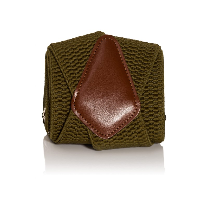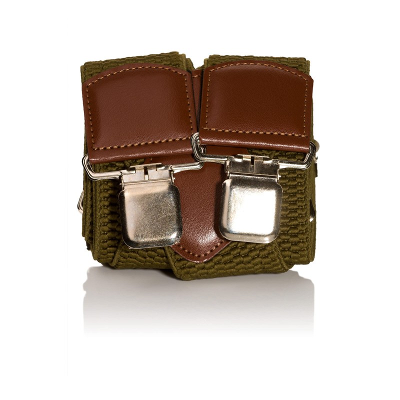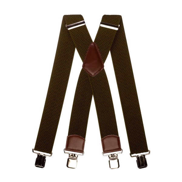 Olata Extra Wide Mens X-Shape Braces with Brown Leather - 5cm, olive green